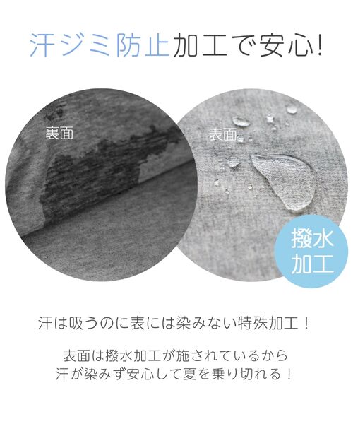 汗染み防止機能付きで、夏場も清潔感をキープしやすい仕様。