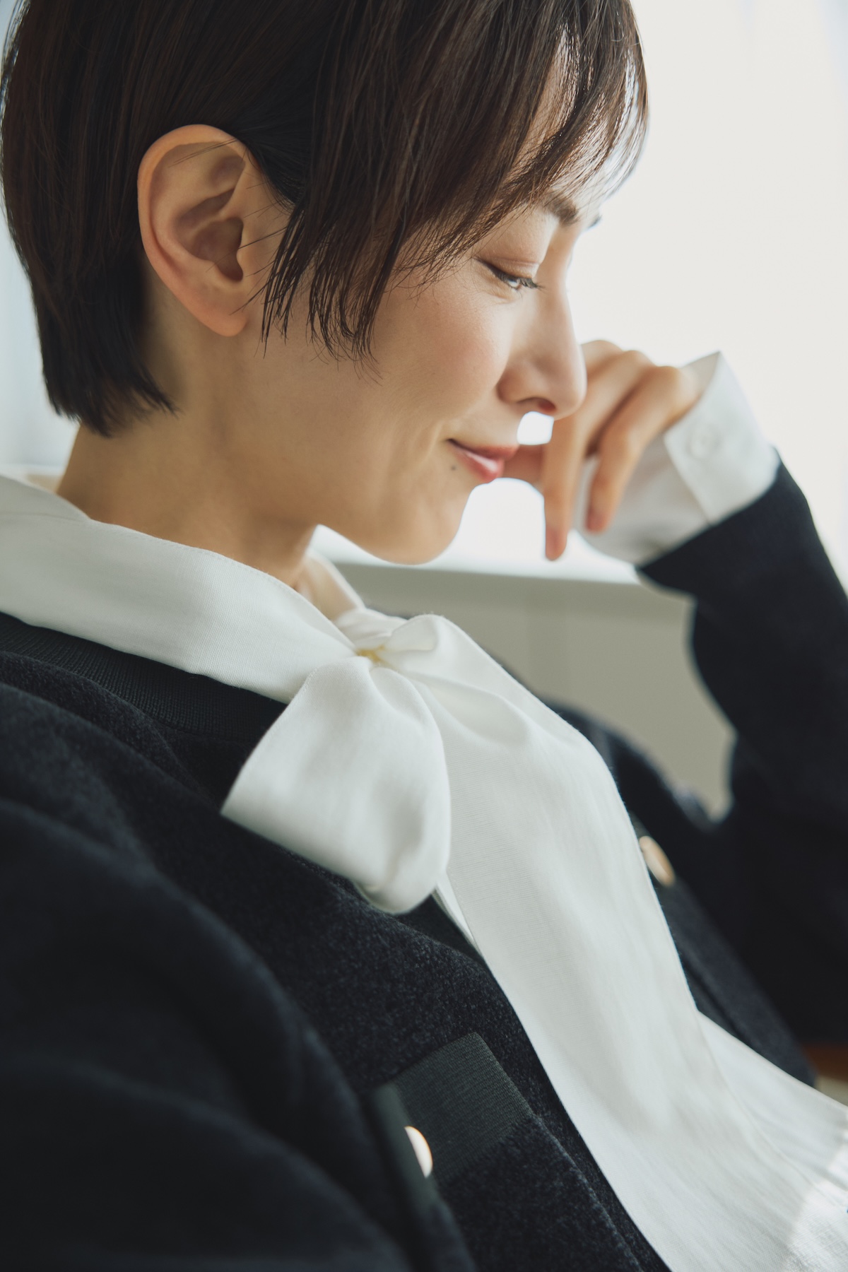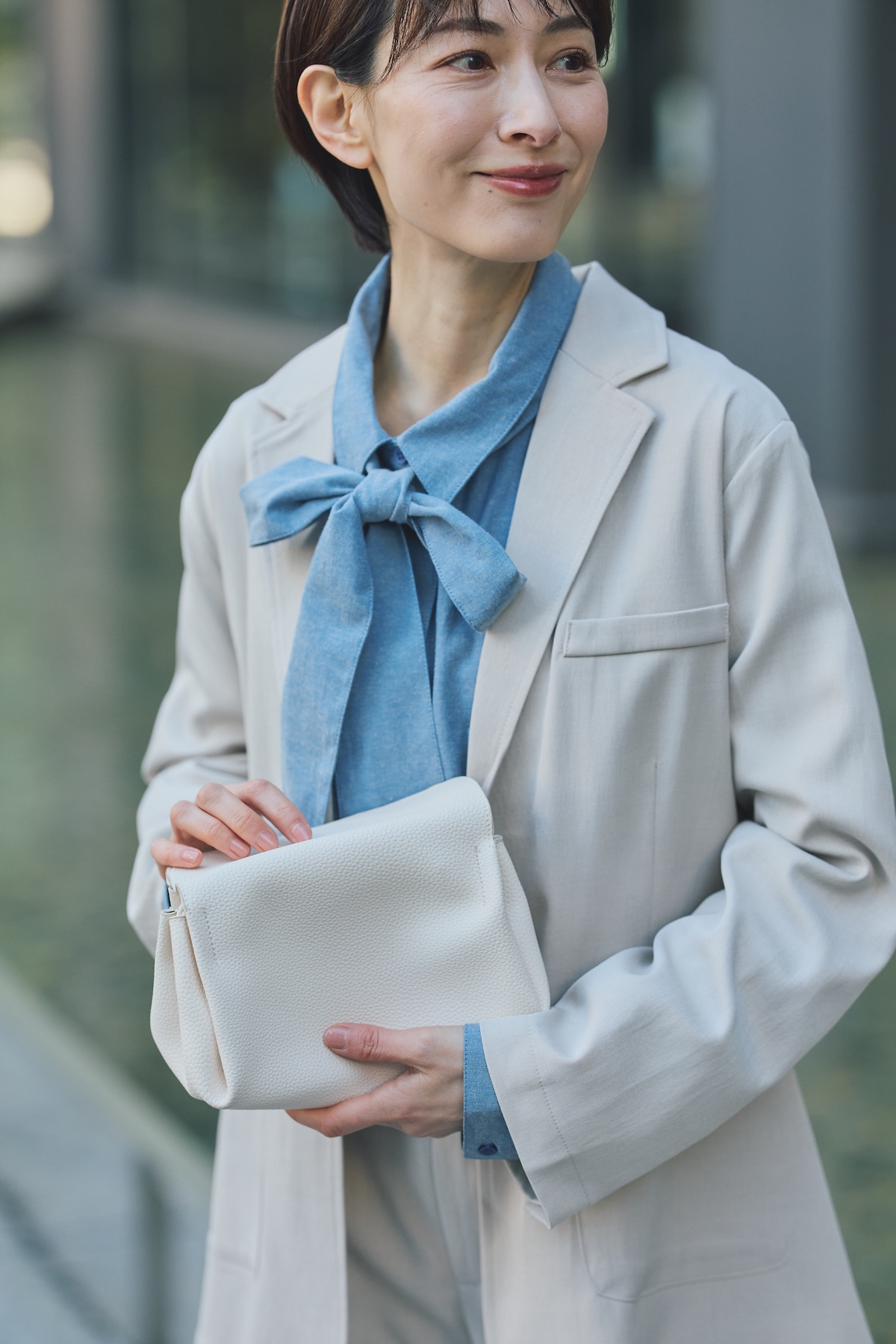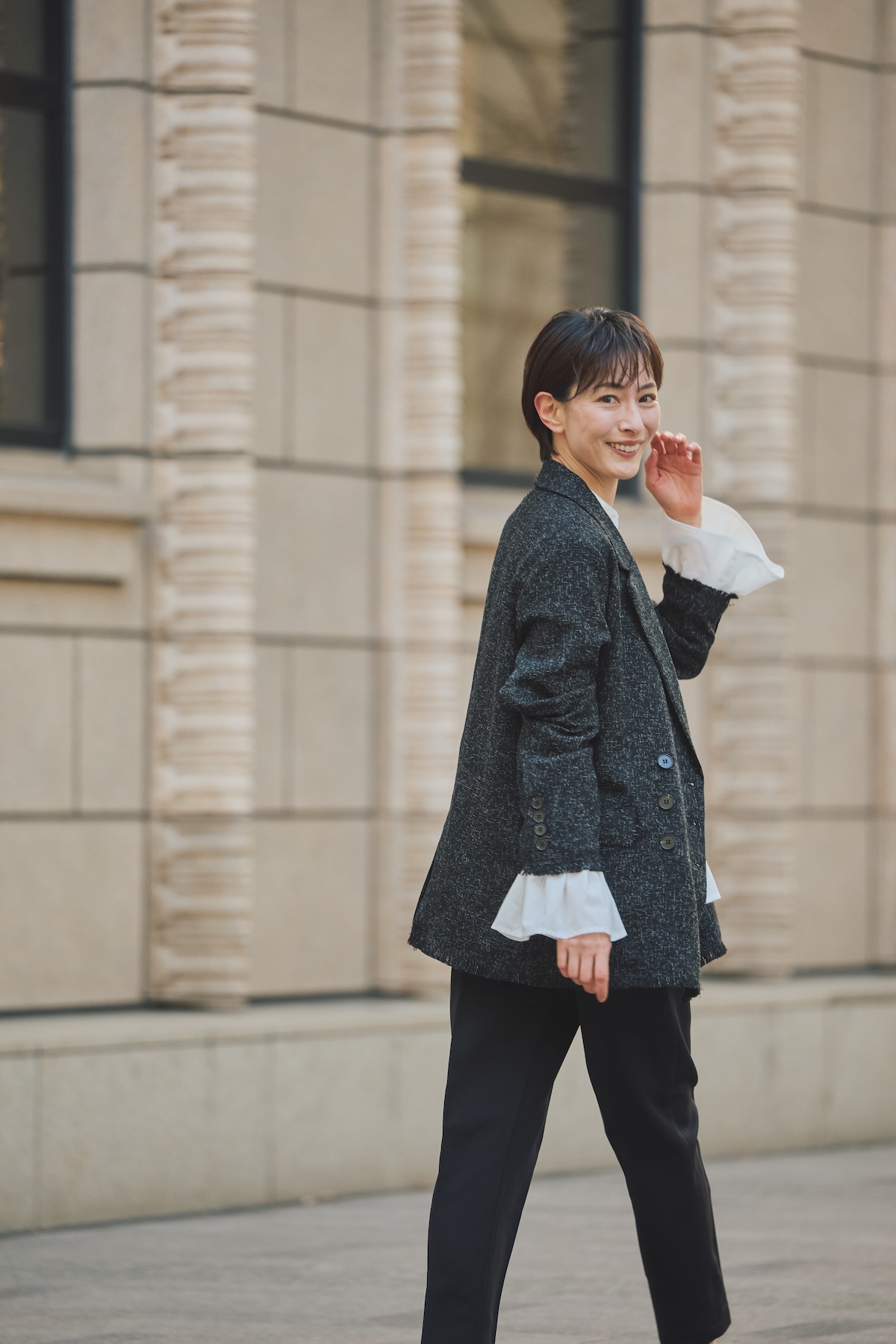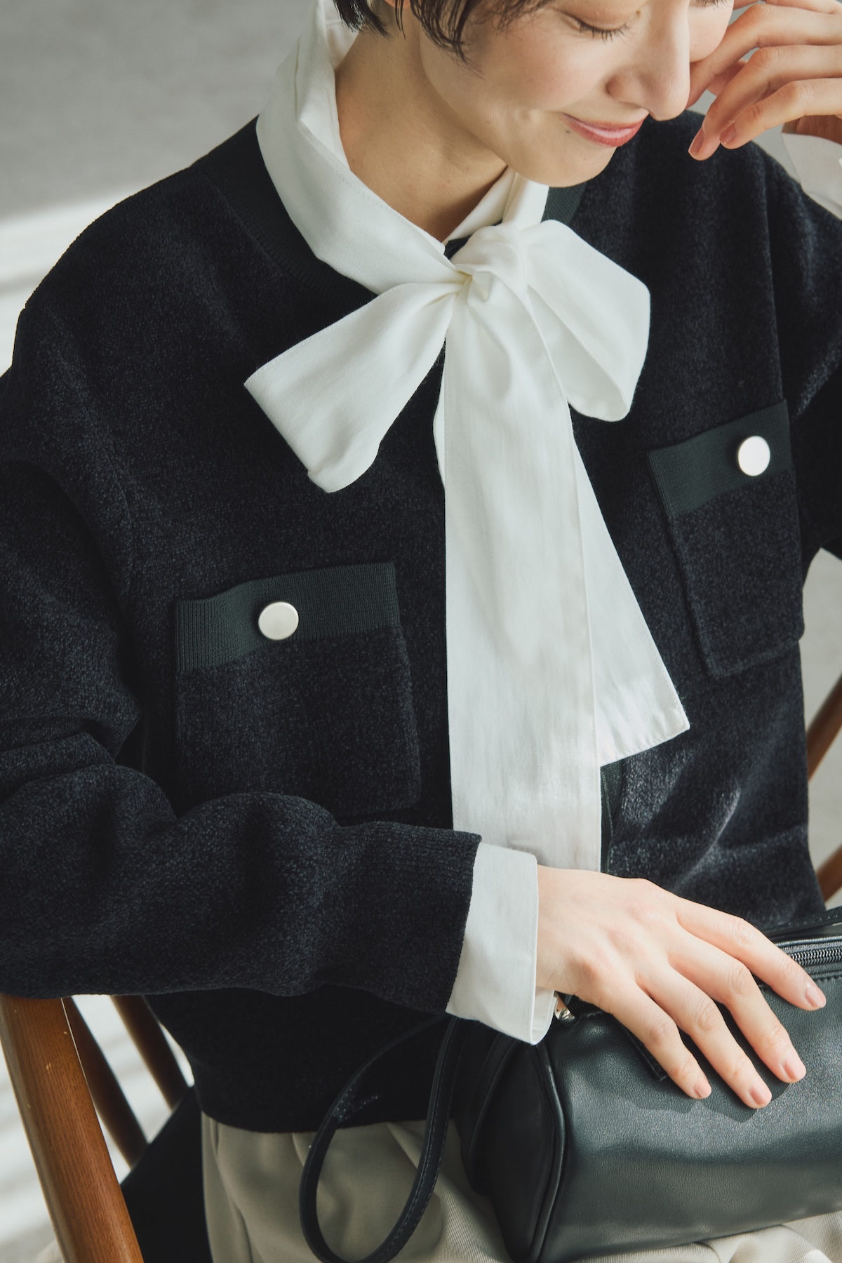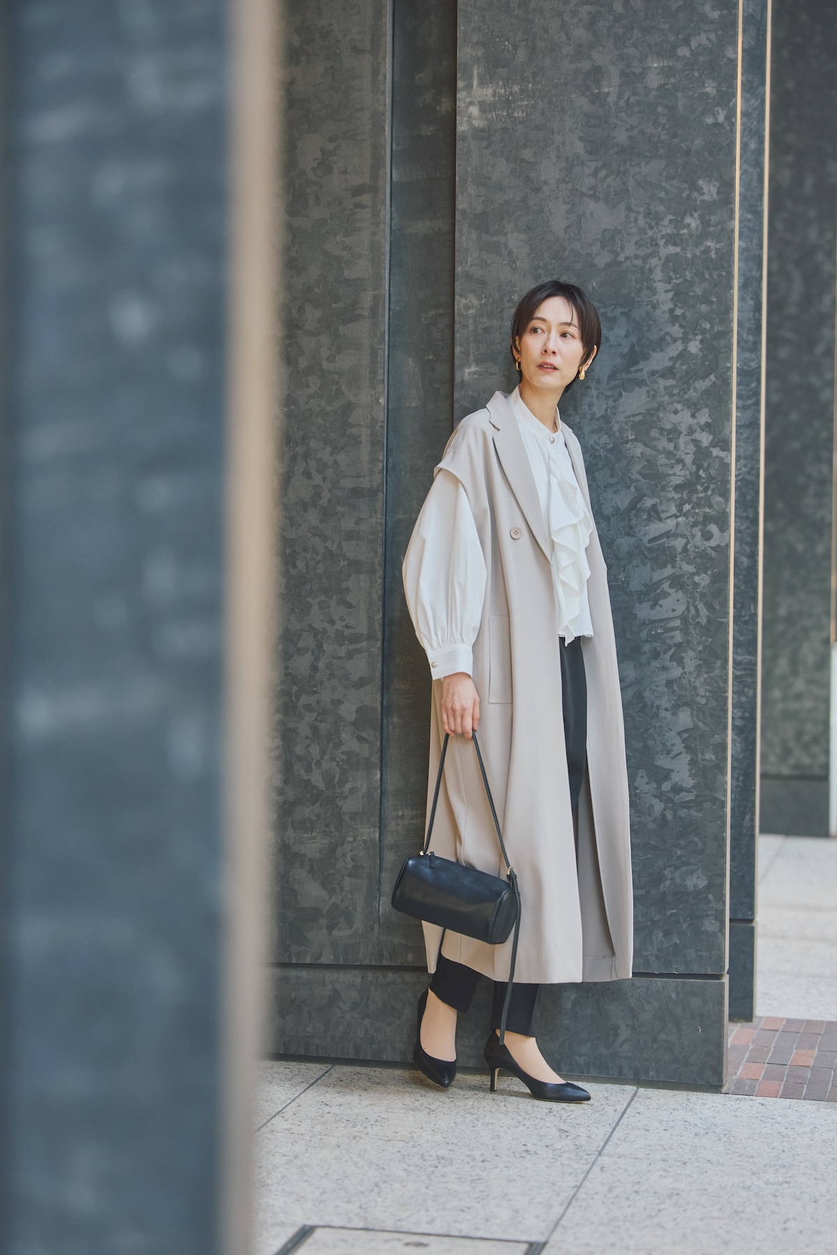 [SET]ペプラムフリルブラウス×ウエストサテンタックテーパードパンツ